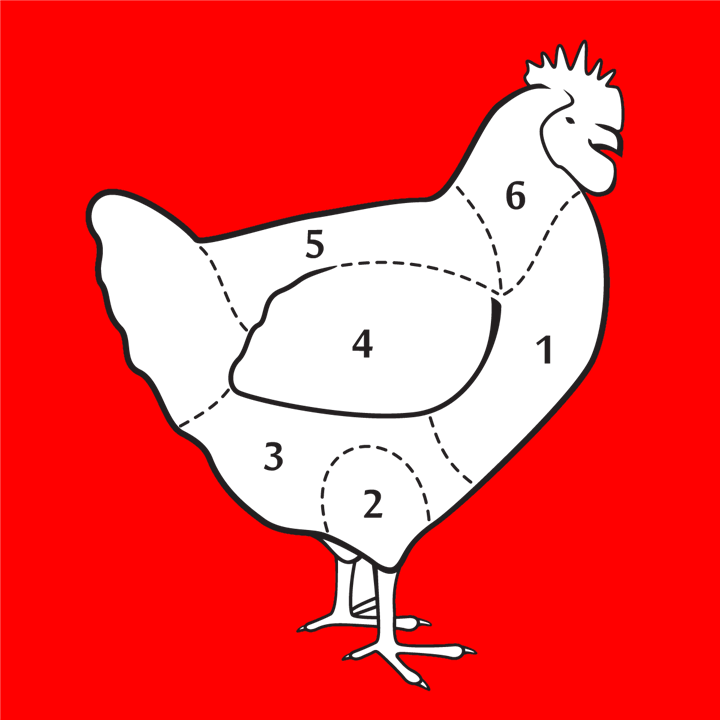 | 1 | Poitrine (2 filets) | 150 g | Bouillir |